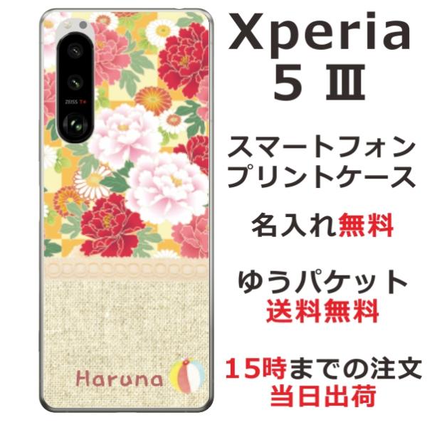 Xperia 5 III SO-53B SOG05 エクスペリア5 III らふら 名入れ スマホケース 和柄 花 牡丹