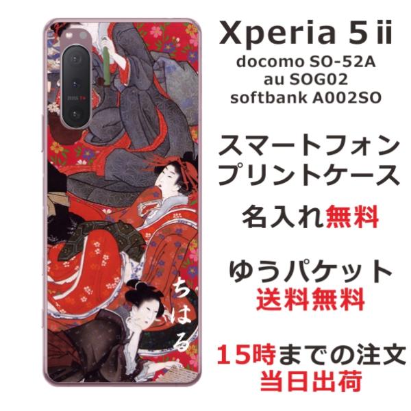 Xperia 5 II SO-52A SOG02 A002so エクスペリア5 II らふら 名入れ スマホケース 和柄 花魁