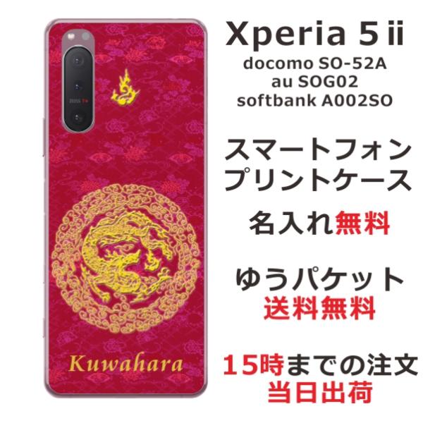 Xperia 5 II SO-52A SOG02 A002so エクスペリア5 II らふら 名入れ スマホケース 和柄 円龍赤