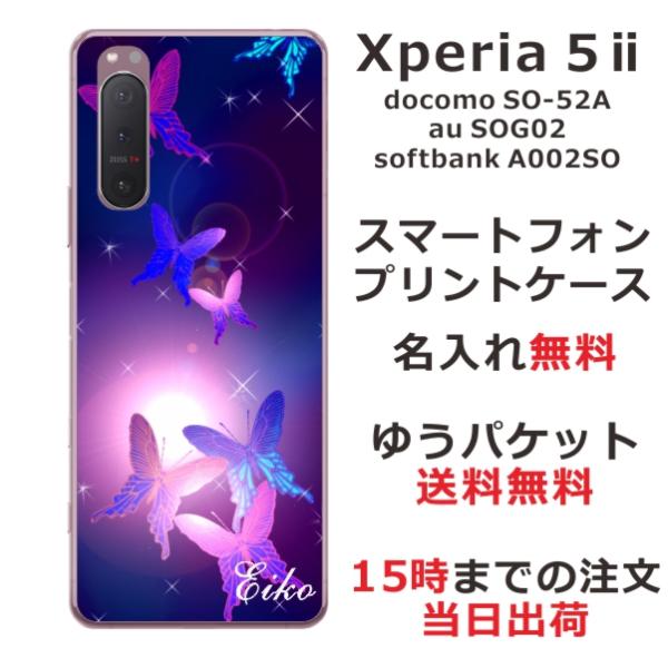 Xperia 5 II SO-52A SOG02 A002so エクスペリア5 II らふら 名入れ スマホケース 和柄 紫蝶々