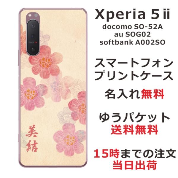 Xperia 5 II SO-52A SOG02 A002so エクスペリア5 II らふら 名入れ スマホケース 和柄 花 ふんわり花柄