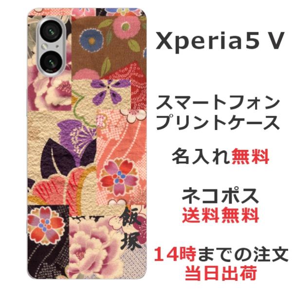 Xperia 5 V SO-53D SOG12 エクスペリア5 V らふら 名入れ スマホケース 和柄 和花パッチワーク