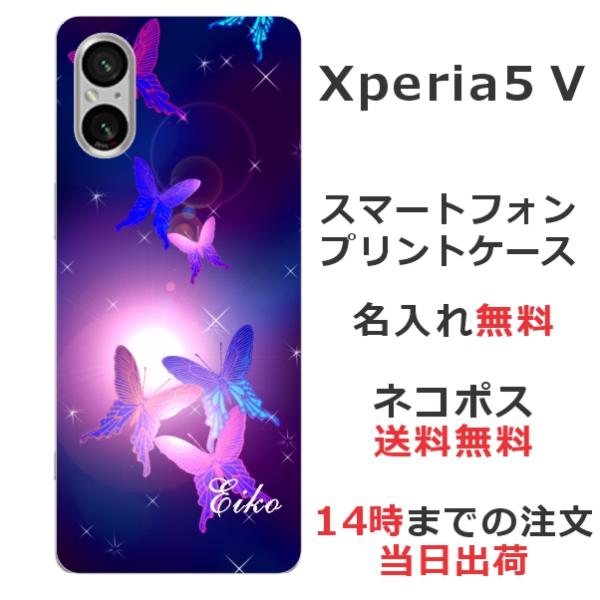Xperia 5 V SO-53D SOG12 エクスペリア5 V らふら 名入れ スマホケース 和柄 紫蝶々