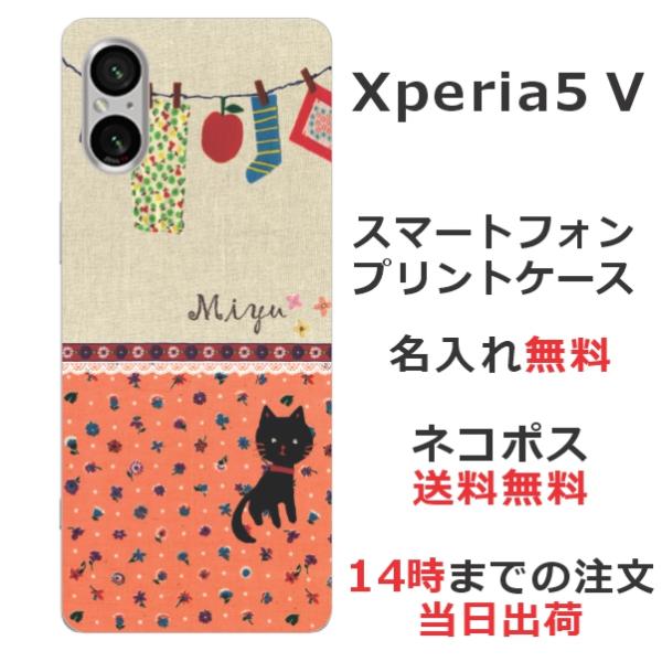 Xperia 5 V SO-53D SOG12 エクスペリア5 V らふら 名入れ スマホケース 黒猫 洗濯物