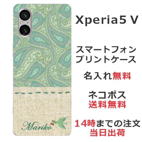 Xperia 5 V SO-53D SOG12 エクスペリア5 V らふら 名入れ スマホケース 北欧デザイン ペイズリー
