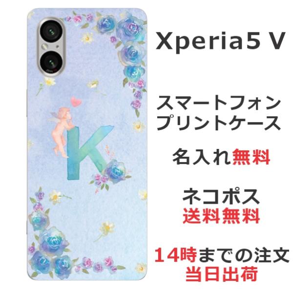 Xperia 5 V SO-53D SOG12 エクスペリア5 V らふら 名入れ スマホケース イニシャル エンジェル