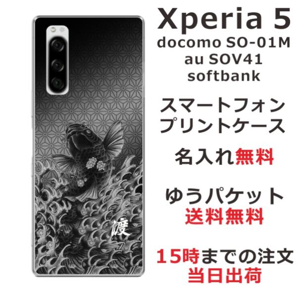 Xperia 5 SO-01M SOV41 901so エクスペリア5 らふら 名入れ スマホケース 和柄 昇り鯉黒
