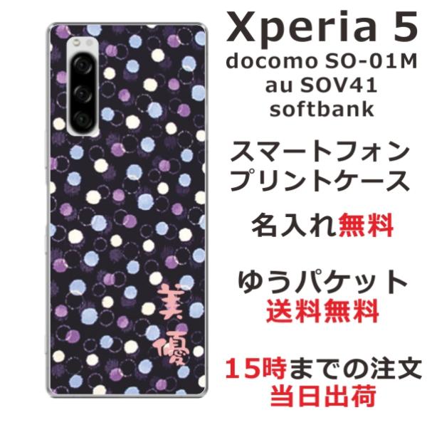 Xperia 5 SO-01M SOV41 901so エクスペリア5 らふら 名入れ スマホケース 和柄 モダンドットネイビー