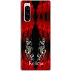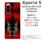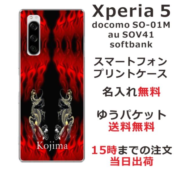Xperia 5 SO-01M SOV41 901so エクスペリア5 らふら 名入れ スマホケース 和柄 炎闇双龍