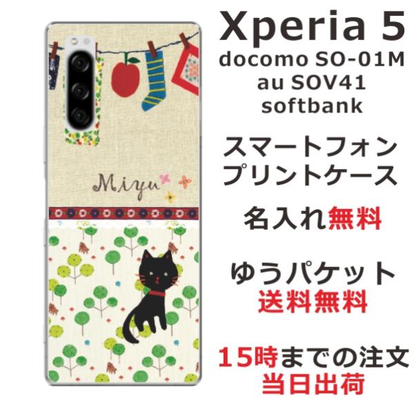 Xperia 5 SO-01M SOV41 901so エクスペリア5 らふら 名入れ スマホケース 黒猫 洗濯物