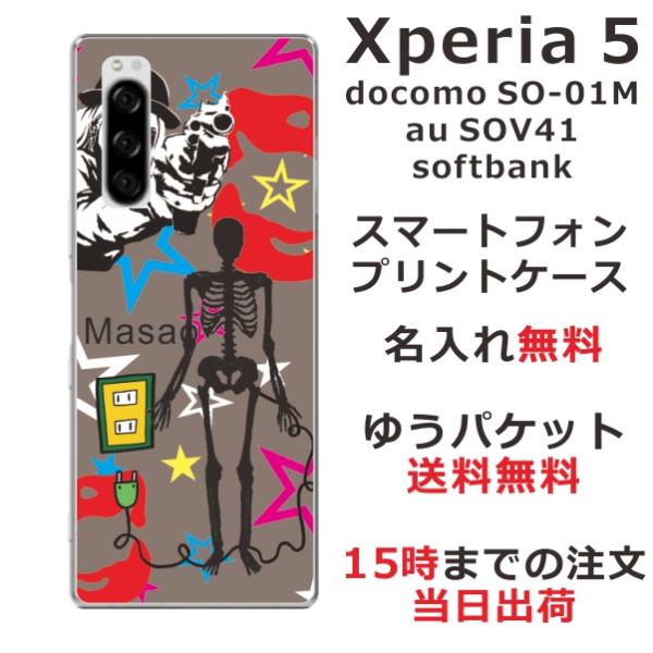 Xperia 5 SO-01M SOV41 901so エクスペリア5 らふら 名入れ スマホケース 狙われたドクロ