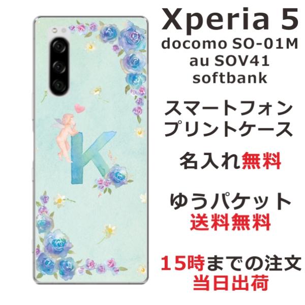 Xperia 5 SO-01M SOV41 901so エクスペリア5 らふら 名入れ スマホケース イニシャル エンジェル