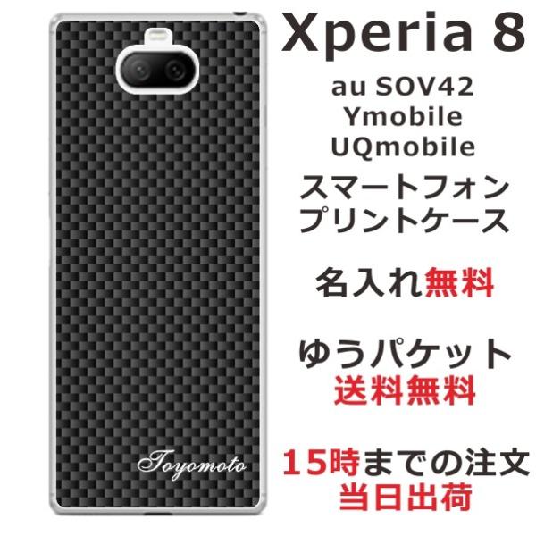 Xperia 8 ケース SOV42 エクスペリア8 カバー らふら 名入れ カーボン ブラック