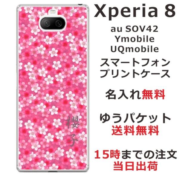 Xperia 8 ケース SOV42 エクスペリア8 カバー らふら 名入れ 和柄 桜ピンク