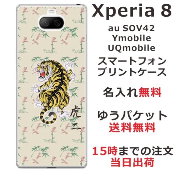 Xperia 8 ケース SOV42 エクスペリア8 カバー らふら 名入れ 和柄 竹蜻蛉虎