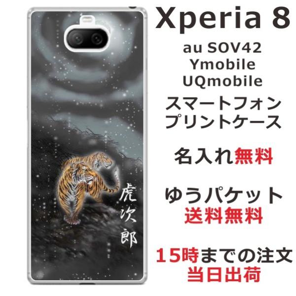 Xperia 8 ケース SOV42 エクスペリア8 カバー らふら 名入れ 和柄 闇夜双虎
