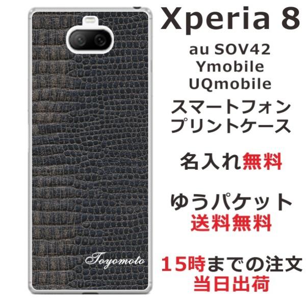 Xperia 8 ケース SOV42 エクスペリア8 カバー らふら 名入れ クロコダイル ブラック
