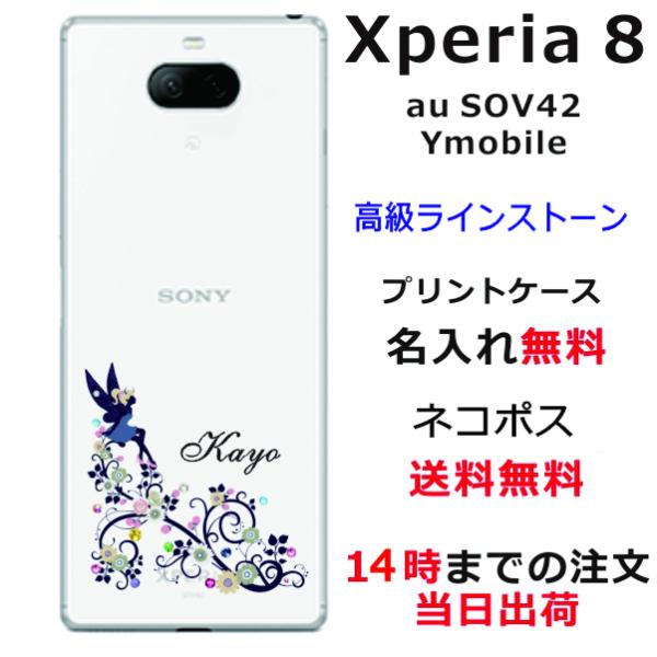 Xperia 8 ケース SOV42 エクスペリア8 カバー ラインストーン かわいい らふら 名入れ フェアリーフラワー
