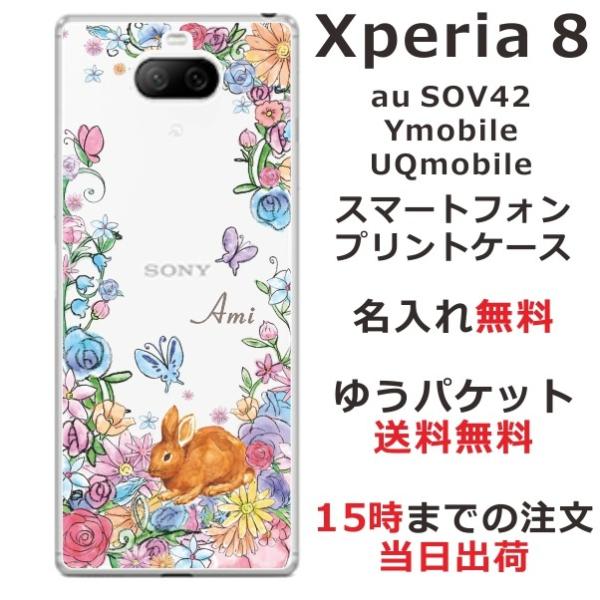 Xperia 8 ケース SOV42 エクスペリア8 カバー らふら 名入れ お花畑 ウサギ