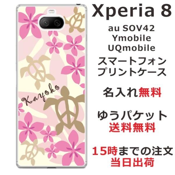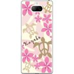 Xperia 8 ケース SOV42 エクスペリア8 カバー らふら 名入れ ハワイアン ピンク ホヌ
