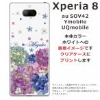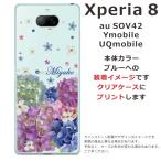 Xperia 8 ケース SOV42 エクスペリア8 カバー ラインストーン かわいい フラワー 花柄 らふら 名入れ 押し花風 春花