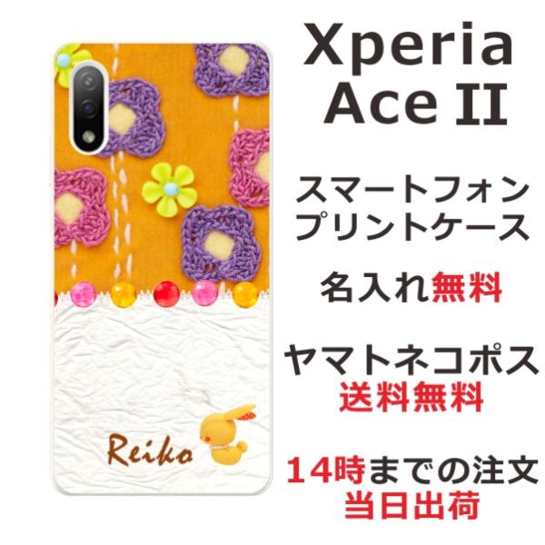 Xperia Ace II SO-41B エクスペリアエース2 らふら 名入れ スマホケース キルトフラワーオレンジ