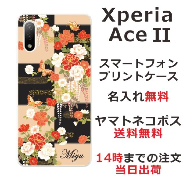 Xperia Ace II SO-41B エクスペリアエース2 らふら 名入れ スマホケース 和柄 花 牡丹蝶
