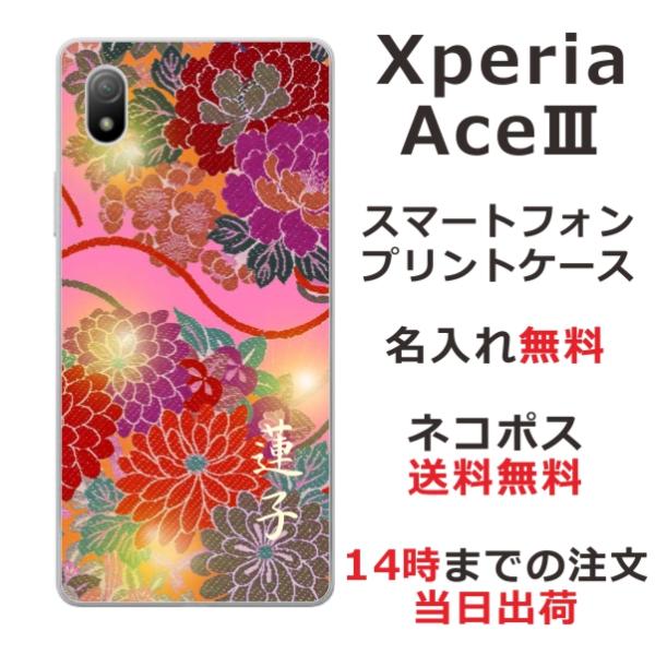 Xperia Ace III SO-53C エクスペリアエース3 らふら 名入れ スマホケース 和柄 和花ピンク