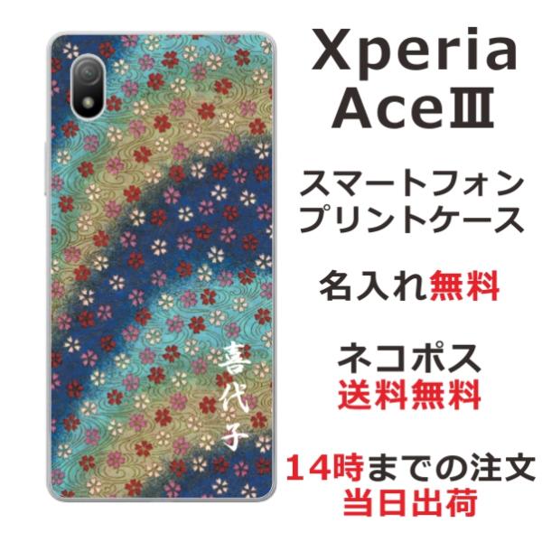 Xperia Ace III SO-53C エクスペリアエース3 らふら 名入れ スマホケース 和柄 和小花ブルーグラデ