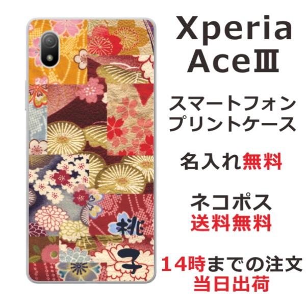 Xperia Ace III SO-53C エクスペリアエース3 らふら 名入れ スマホケース 和柄 着物パッチワークピンク