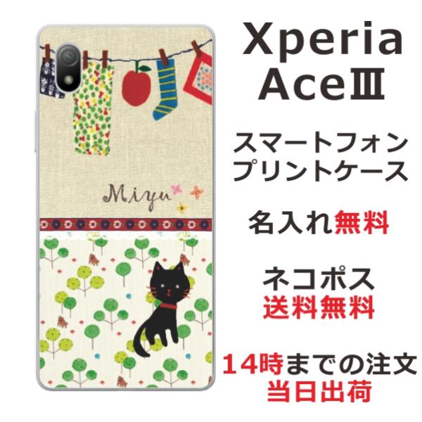 Xperia Ace III SO-53C エクスペリアエース3 らふら 名入れ スマホケース 黒猫 洗濯物