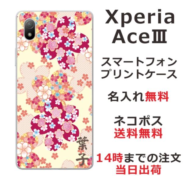 Xperia Ace III SO-53C エクスペリアエース3 らふら 名入れ スマホケース 和柄 花 桜千代紙