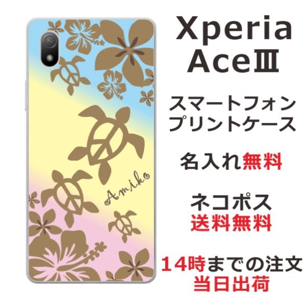Xperia Ace III SO-53C エクスペリアエース3 らふら 名入れ スマホケース ハワイアン グラデーションホヌ