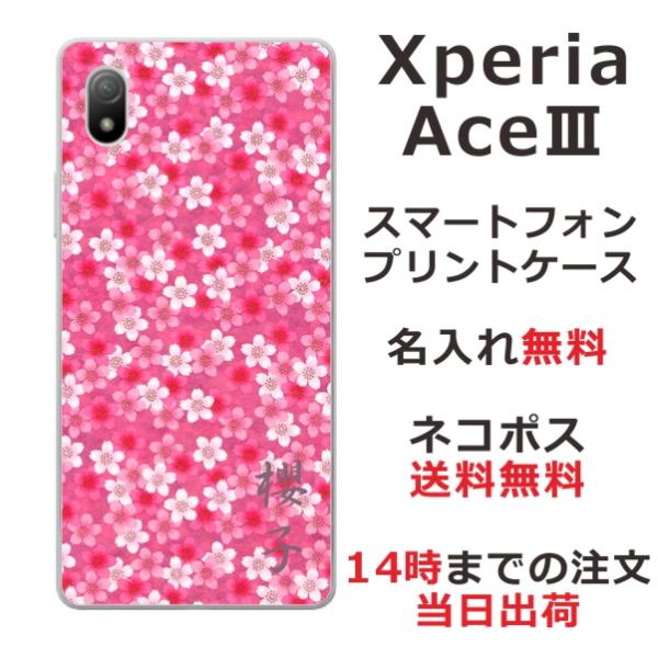 Xperia Ace III SO-53C エクスペリアエース3 らふら 名入れ スマホケース 和柄 桜ピンク