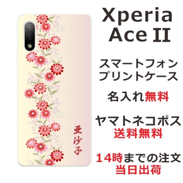 Xperia Ace II SO-41B エクスペリアエース2 らふら 名入れ スマホケース 和柄 花 撫子