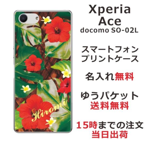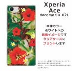 Xperia Ace ケース SO-02L エクスペリアエース カバー らふら 名入れ ハワイアン ハイビスカス