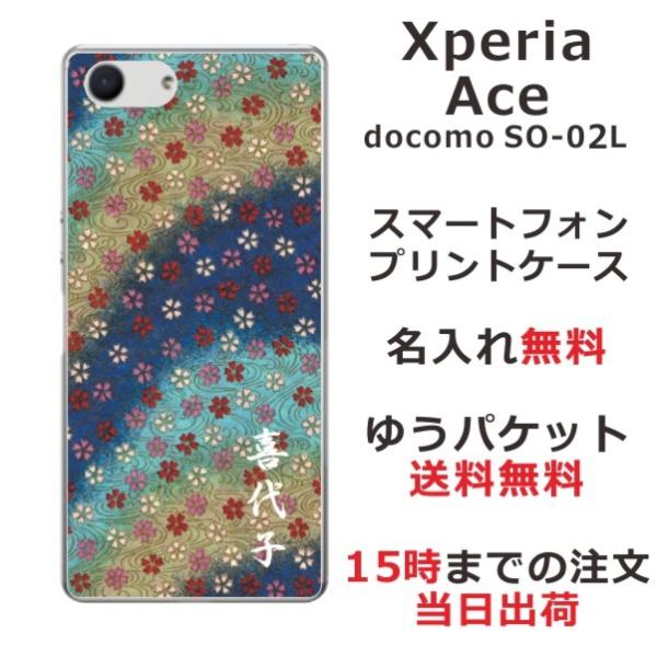 Xperia Ace ケース SO-02L エクスペリアエース カバー らふら 名入れ 和柄 和小花ブルーグラデ