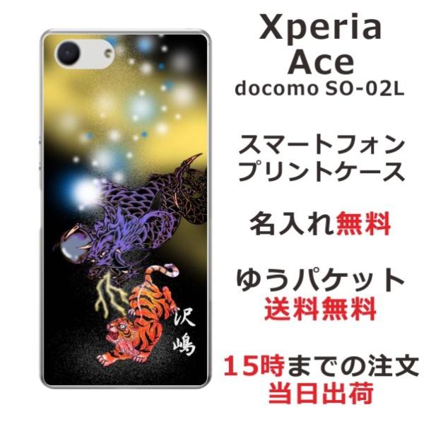 Xperia Ace ケース SO-02L エクスペリアエース カバー らふら 名入れ 和柄 虎龍