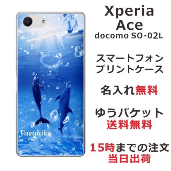 Xperia Ace ケース SO-02L エクスペリアエース カバー らふら 名入れ ドルフィン リング