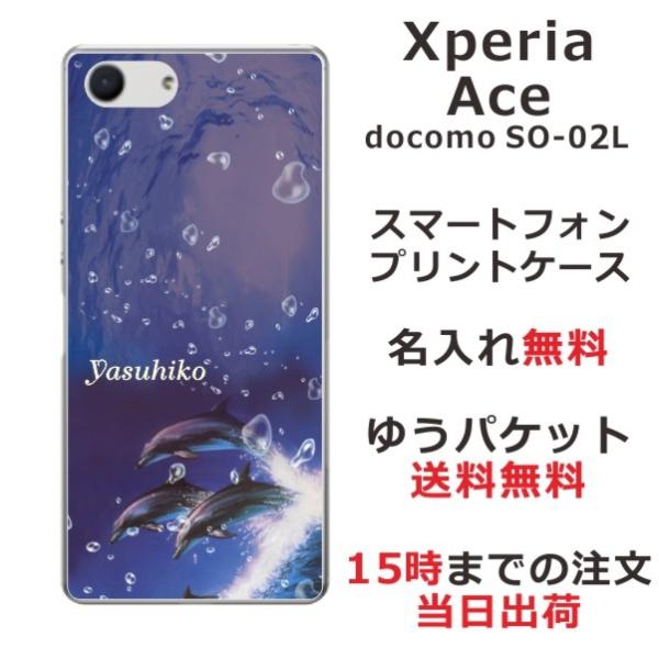 Xperia Ace ケース SO-02L エクスペリアエース カバー らふら 名入れ ドルフィン ジャンプ