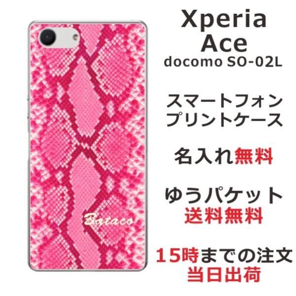 Xperia Ace ケース SO-02L エクスペリアエース カバー らふら 名入れ へび柄 ピンク