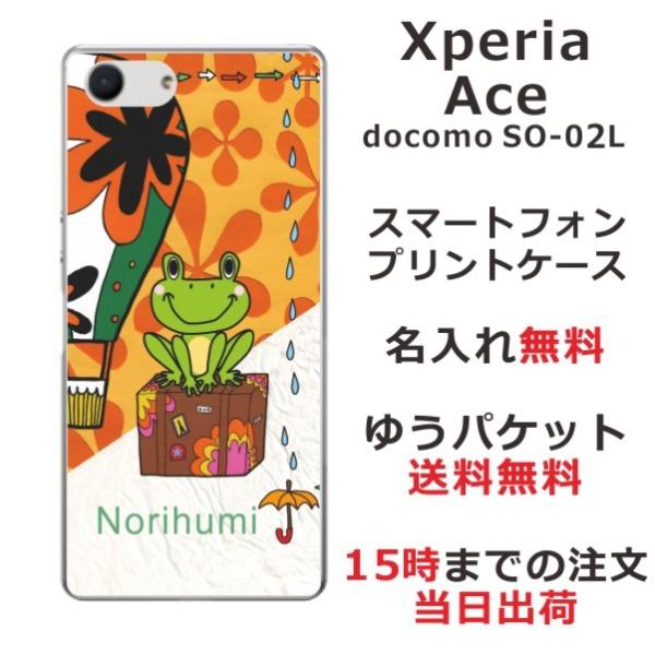 Xperia Ace ケース SO-02L エクスペリアエース カバー らふら 名入れ カエル 気球