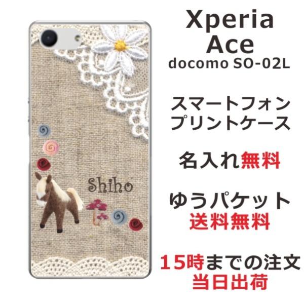 Xperia Ace ケース SO-02L エクスペリアエース カバー らふら 名入れ コットンレース風 ポニー