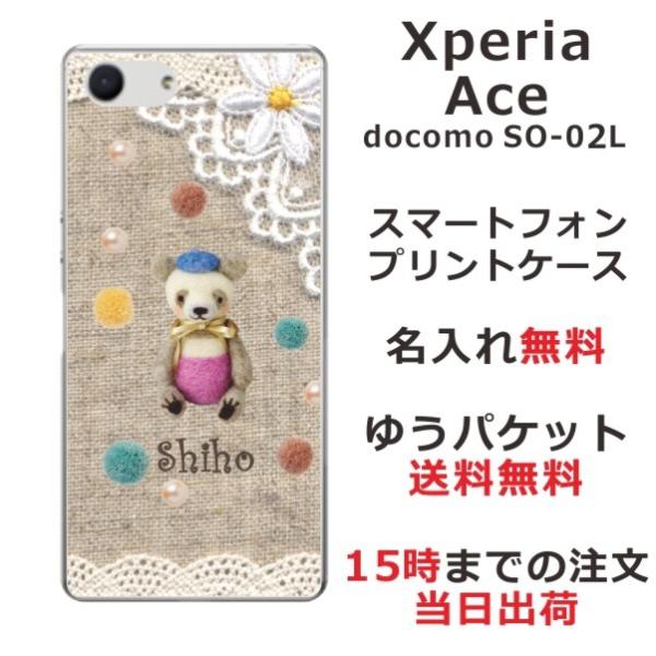 Xperia Ace ケース SO-02L エクスペリアエース カバー らふら 名入れ コットンレース風 クマ