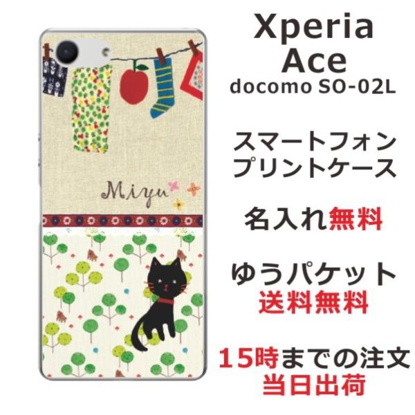 Xperia Ace ケース SO-02L エクスペリアエース カバー らふら 名入れ 黒猫 洗濯物
