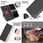手帳型なので、スマホ背面・液晶まで保護します。外側は薄くて丈夫なPUレザー素材、内側のTPUケースにスマホをはめ込むことでしっかり固定されます。
