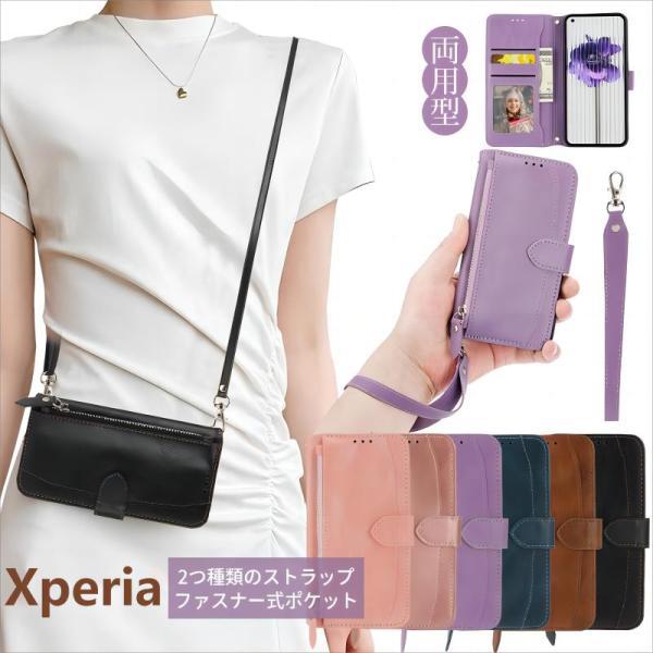 xperia 10 v 手帳型ケース 小銭入れ ショルダー エクスペリア 1 V ケース スマホショルダー Xperia 5 IV 5 V 携帯ケース ショルダー ファスナー コインケース