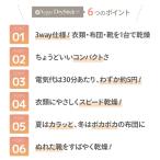布団乾燥機、衣服乾燥機、靴乾燥機の3つの機能が1つになったマルチ乾燥機能のスティック型乾燥機です。ふとんのカビやほこり、衣服の半乾きの匂い、湿った靴の匂いこれ一台でまとめて対策頂けます。