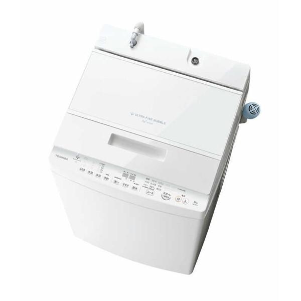 - 商品説明★ 抗菌ウルトラファインバブル洗浄W驚異の洗浄技術が、いつものお洗濯を変えます。さらに洗うたびに抗菌。部屋干し臭の原因菌も抑える。※東芝独自の搭載技術により、洗濯機内部で1マイクロメートル未満のナノサイズの泡「ウルトラファインバブル」を生成し、ウルトラファインバブル水と洗剤を混ぜ合わせた洗濯水により洗濯を行うことで、皮脂汚れに対する洗浄効果を高め、衣類の黄ばみを抑えられる洗浄技術。※抗菌について・試験方法:JIS L1902に基づく菌液吸収法、当社にて処理した試験布を一般財団法人ボーケン品質評価機構にて評価・抗菌方法:銀イオンによる・対象部分:洗濯槽内の衣類・試験結果:抗菌活性値2.0以上(菌の抑制率99%以上)★ ほぐせる脱水脱水の最後にパルセーターを細かく動かし、洗濯槽に付いた衣類をはがしてほぐします。★ 低振動・低騒音設計忙しい毎日だからこそ、振動や運転音を気にせずいつでもお洗濯できると助かります。低振動・低騒音設計なので、夜や早朝の時間を有効活用してお洗濯できます。※洗い約26dB 脱水約37dB★ 選べる便利なコースお気に入りの服もしっかり香る「フレグランスコース」搭載。※柔軟剤や衣類の種類により、香りの付き具合が変わる場合があります。★ 自動お掃除モード自動お掃除で槽を除菌、黒カビの発生を抑えます。※除菌、カビの抑制について・試験依頼先:一般財団法人日本食品分析センター・試験方法:洗濯槽・水槽に有機物と共に付着させた菌、カビの減少率測定。・除菌、カビ抑制方法:「自動お掃除」モードでの洗濯槽・水槽の洗浄による。・対象部分:洗濯槽・水槽。・試験結果:菌、カビの減少率99%以上。スペック* 容量:洗濯脱水8kg* 標準使用水量:95L* 消費電力量(50/60Hz):82Wh* 目安時間(約):39分* 運転音(約):洗濯26dB / 脱水37dB* インバーター搭載:有* 風呂水ポンプ:有* 洗濯槽の種類:ステンレス* コース:標準、スピード(5kg)、メモリー(8kg)、つけおき(5kg)、毛布(4.7kg)、部屋干し(4.8kg)、おしゃれ着(1.5kg)、フレグランス(5kg)* 総外形寸法:幅(排水ホース含む)600×奥行569×高さ980mm* 設置可能防水パン(奥行内寸):510mm以上* 質量(約):41kg