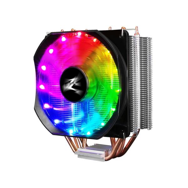 - 静音タイプの120mm RGB LEDファンを搭載したサイドフロー型CPUクーラー■4本のヒートパイプを内蔵したヒートシンク■ヒートパイプがCPUに直接触れるダイレクトタッチヒートパイプ方式を採用■最大26dBAの静音120mmファン■ファンのフレームに15個のRGB LEDを搭載■エアフローを改善するShark Fin Bladeを搭載